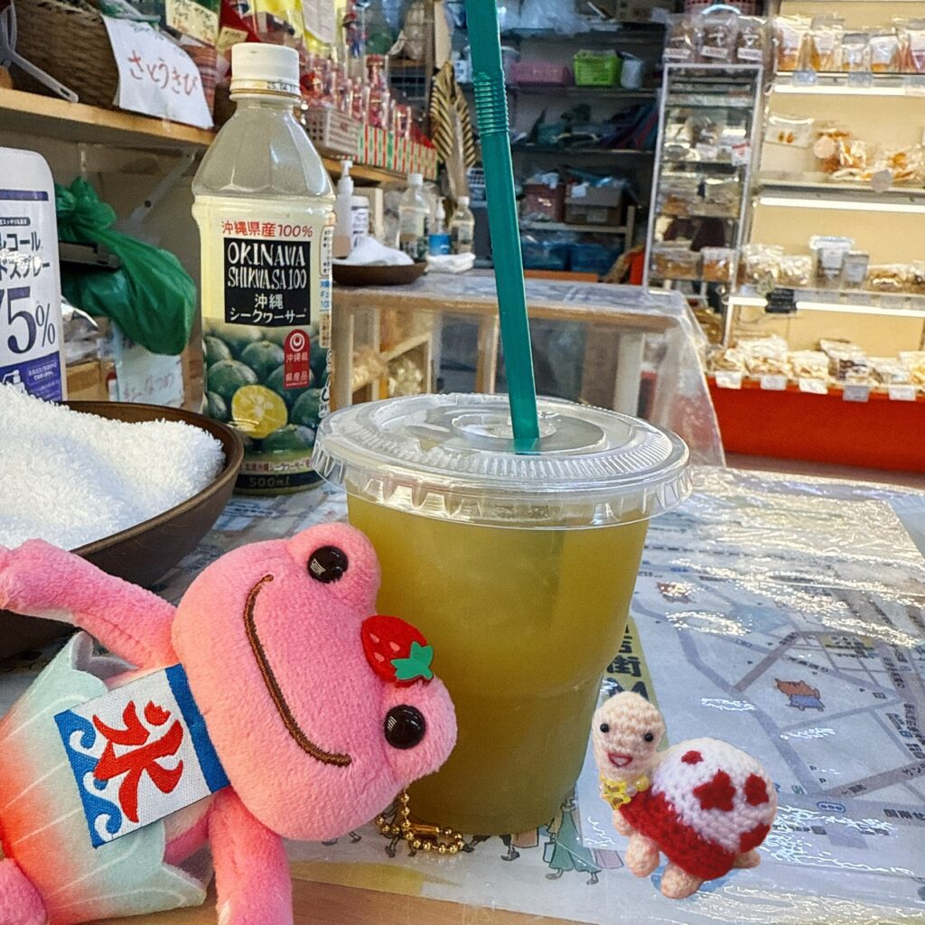 甘すぎたらシークワーサー果汁をキャップの半分くらい入れてね…と店員さん。