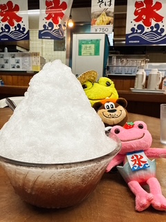 1日中お天気良いところで遊んでいたらかき氷が食べたくなっちゃったカメ~。